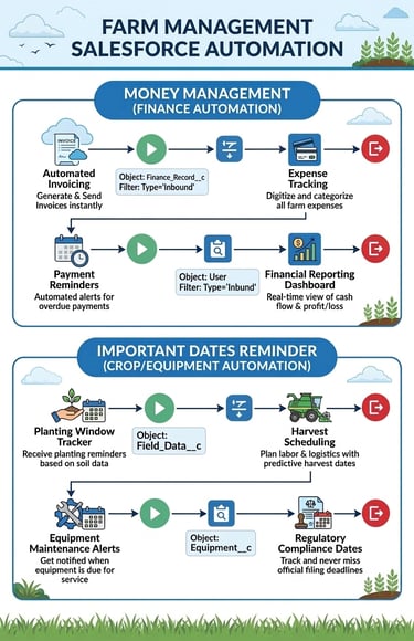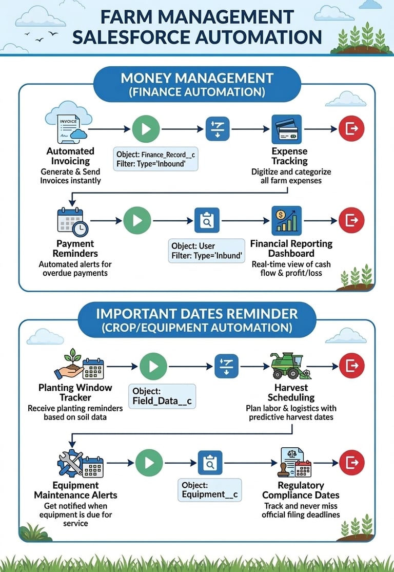 A one-stop solution build on Salesforce can help to many your harvesting crops and will allow the farmers to maintain their data, automate the operations like crop tracking and many more digital things to do by using one app.